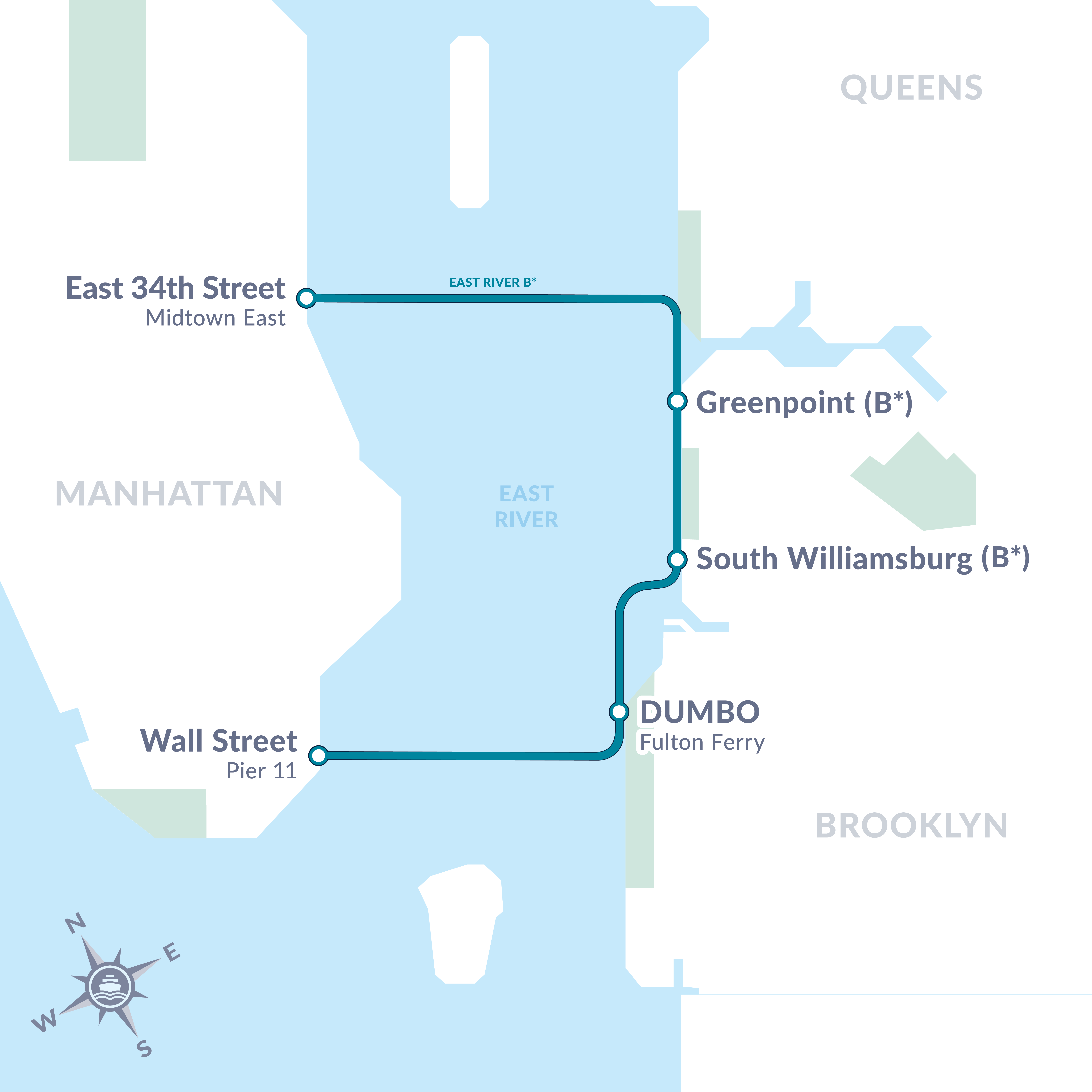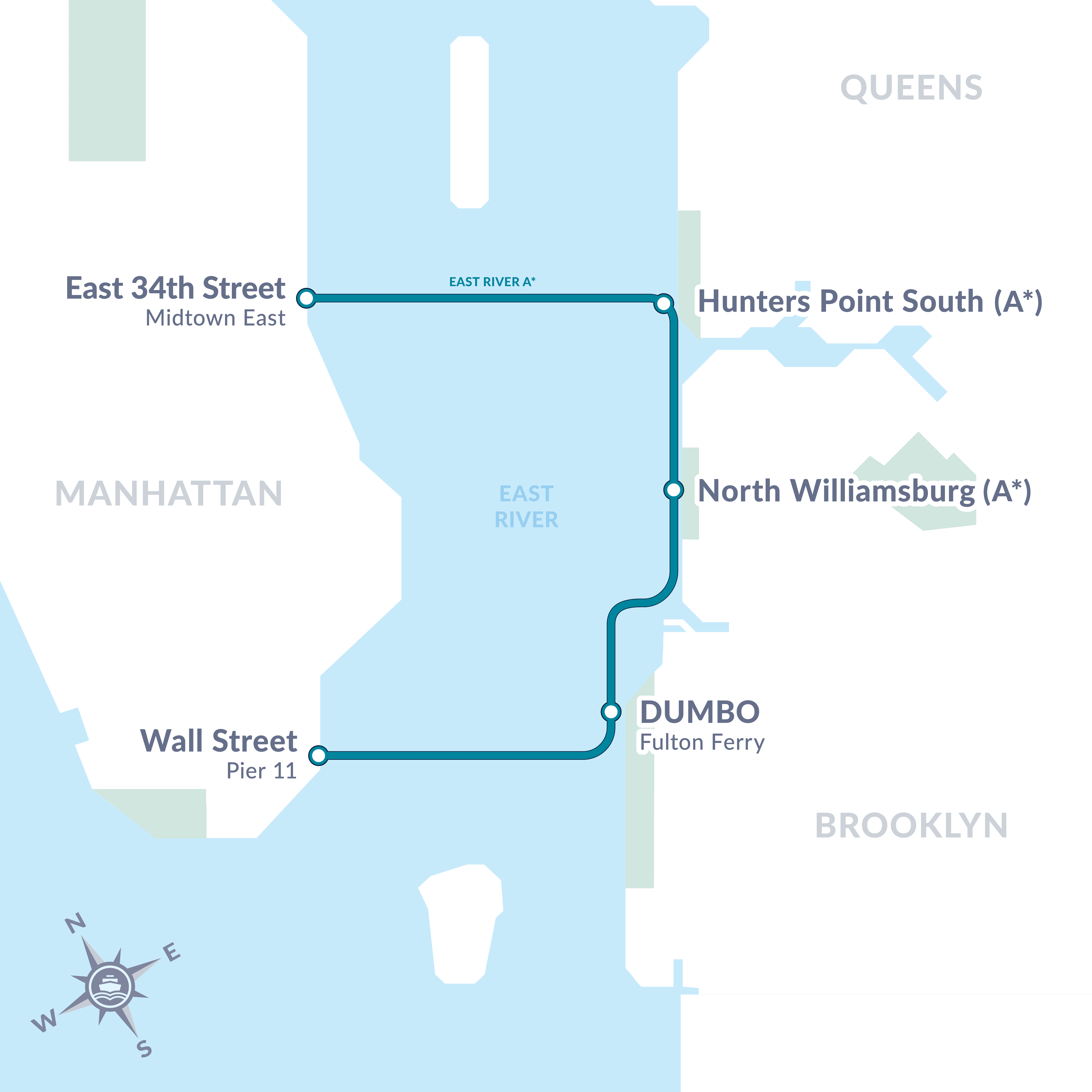 The current East River route of NYC Ferry connects growing residential and business communities along the East River to communities in Midtown and the Financial District.
