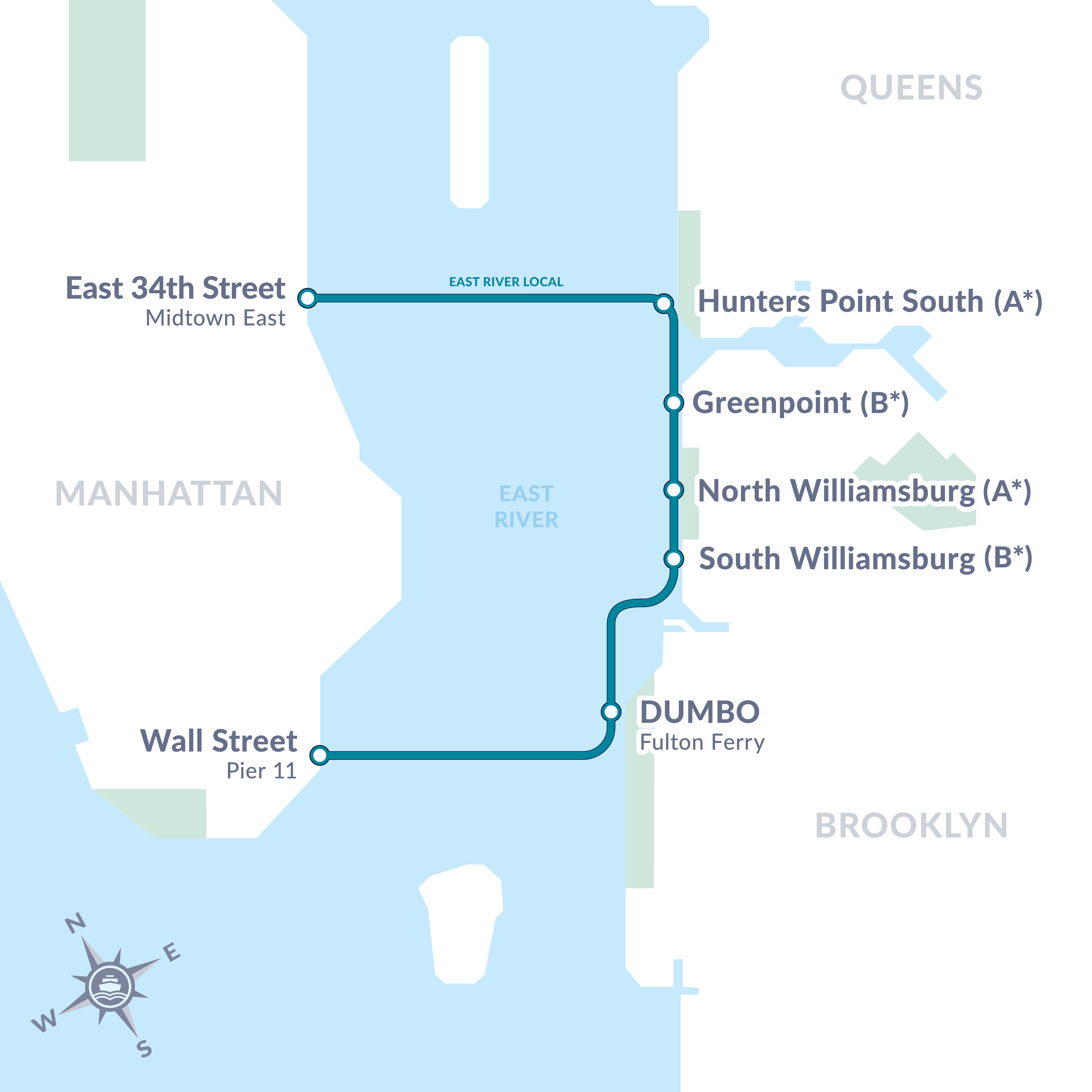East River (A) and East River (B) routes make different stops to provide faster service. Please check the schedule to confirm that your station is served.